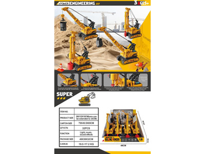 1:16声光惯性 大型履带旋挖打桩机(A)、螺旋打桩机(B)、吊桶起重吊机(C)、开合式抓斗起重机(D)4款混装(英文经典版) |