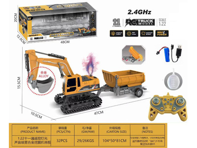 1:22十一通遥控灯光声音喷雾挖掘机拖板2.4GHz |
