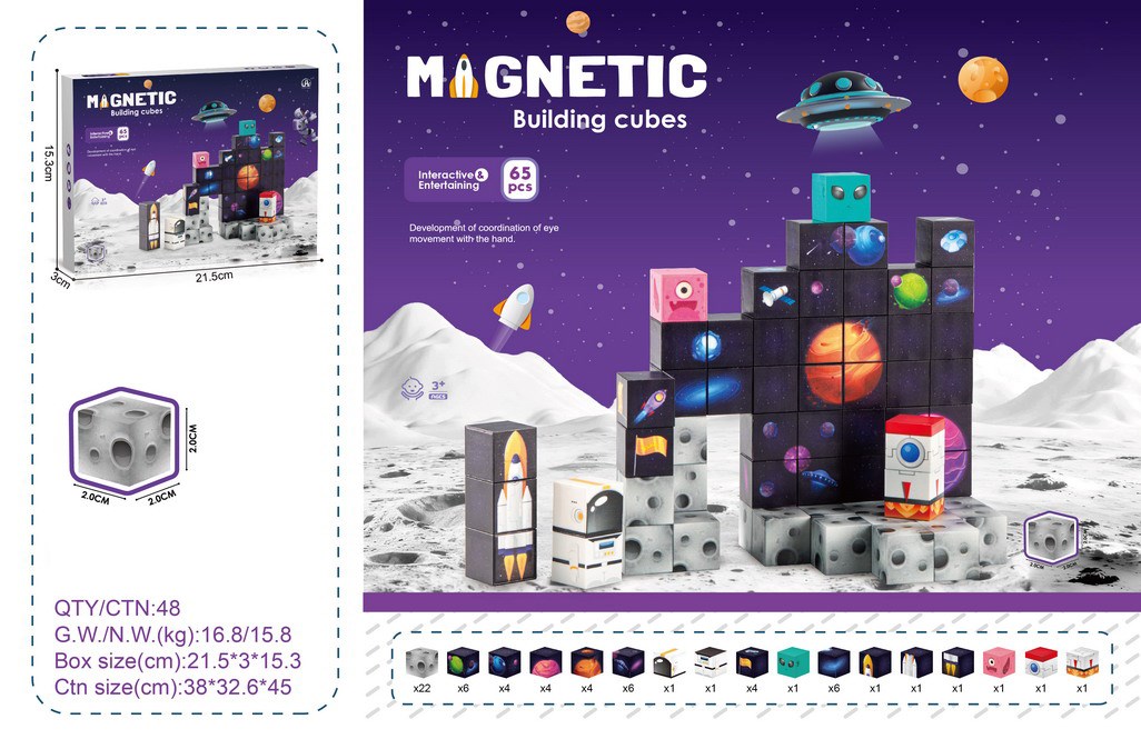 2CM太空主题磁力方块65PCS |