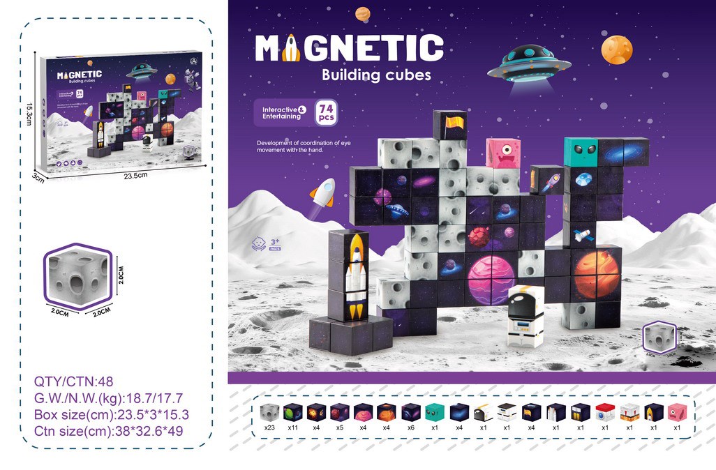 2CM太空主题磁力方块74PCS |
