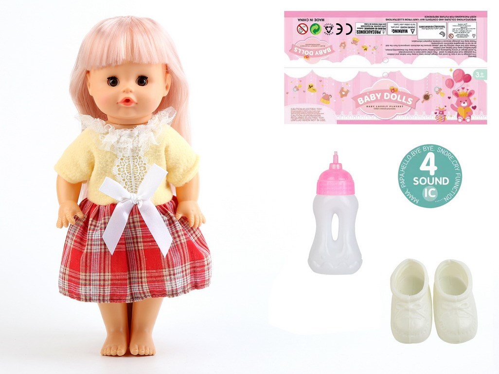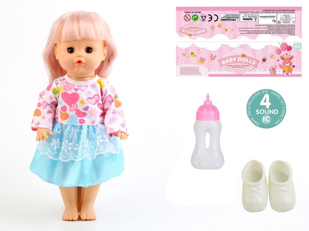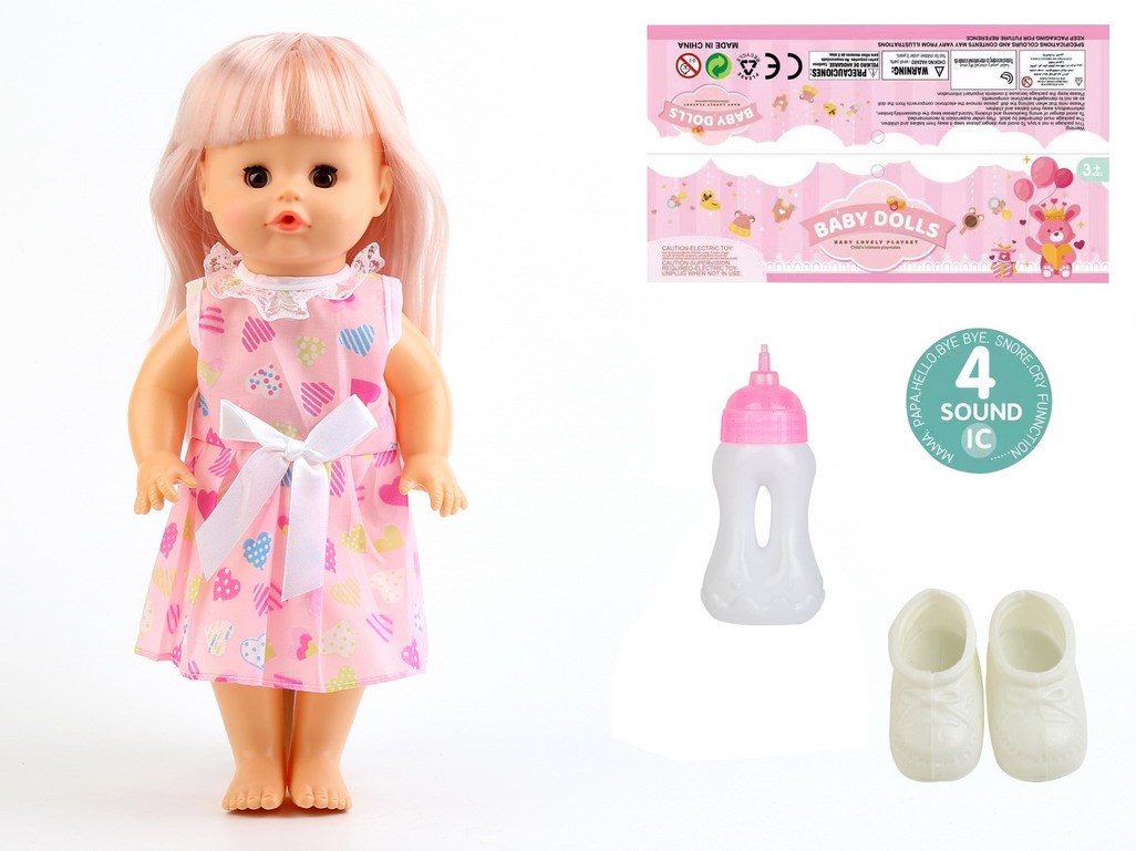 14寸娃娃活眼公仔33CM直脚喝水尿尿带4声IC、奶瓶、鞋子 |