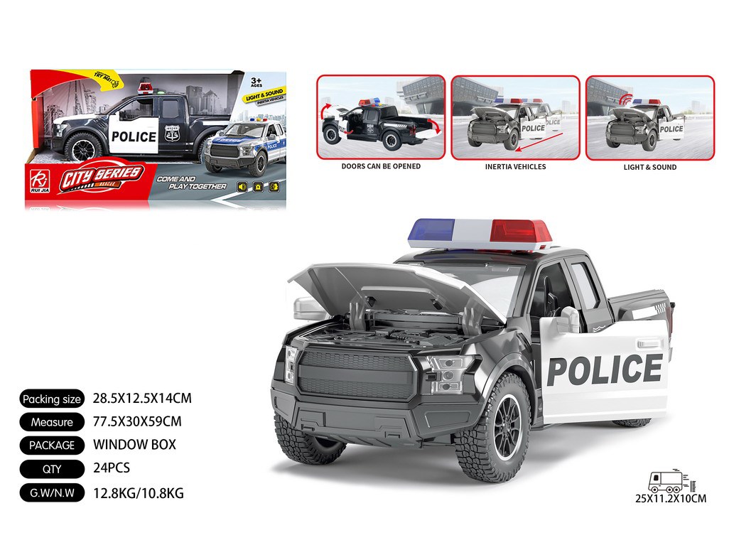 1:16皮卡警车-四开门-黑惯性,灯光,声音,开门 |