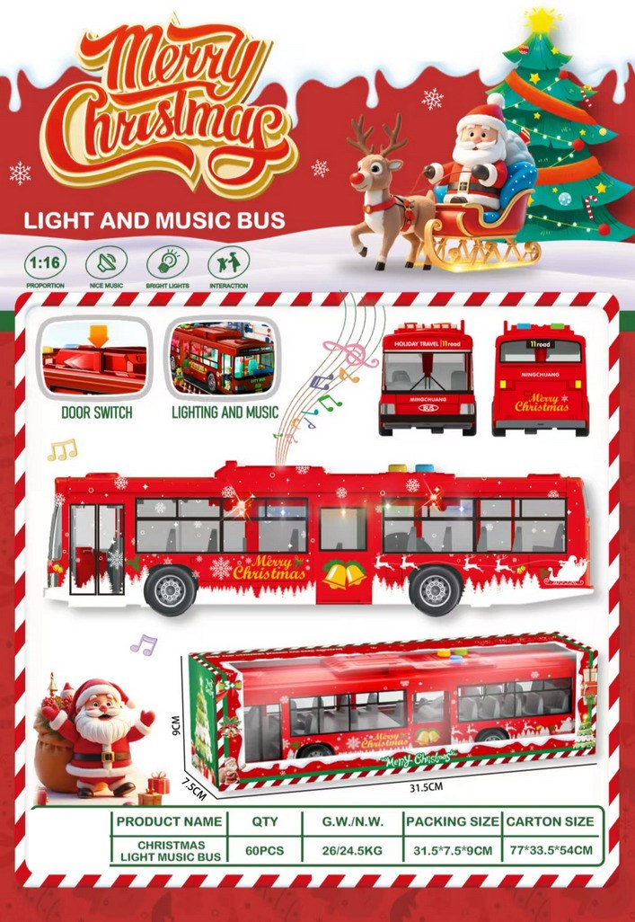 圣诞老人灯光音乐惯性早教玩具公交车大巴车(红色) |