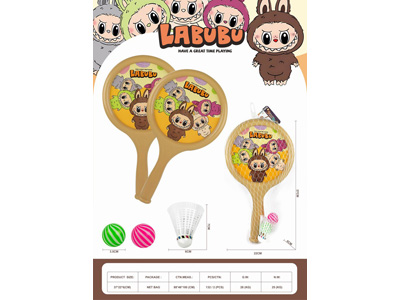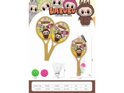 超大桃心形拉布布球拍,带2粒乒乓球+1粒羽毛球 |
