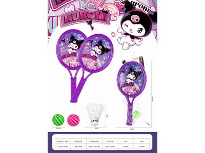 小圆形库洛米球拍,带2粒乒乓球+1粒羽毛球 |